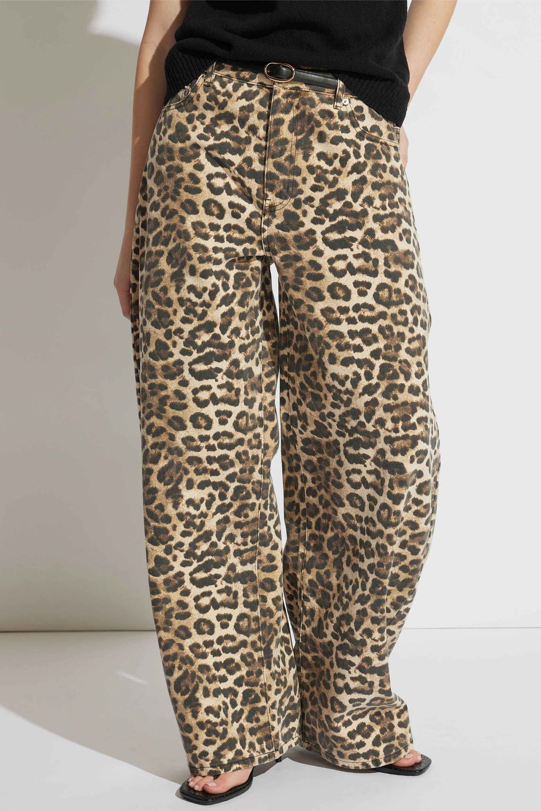 Found: your answer to something dramatic and different. Taking leopard print denim to new heights, the Elize Horseshoe Jean is (extra) dramatic in its wide leg shape, curving out at the hip with a slight tapering in at the ankle.